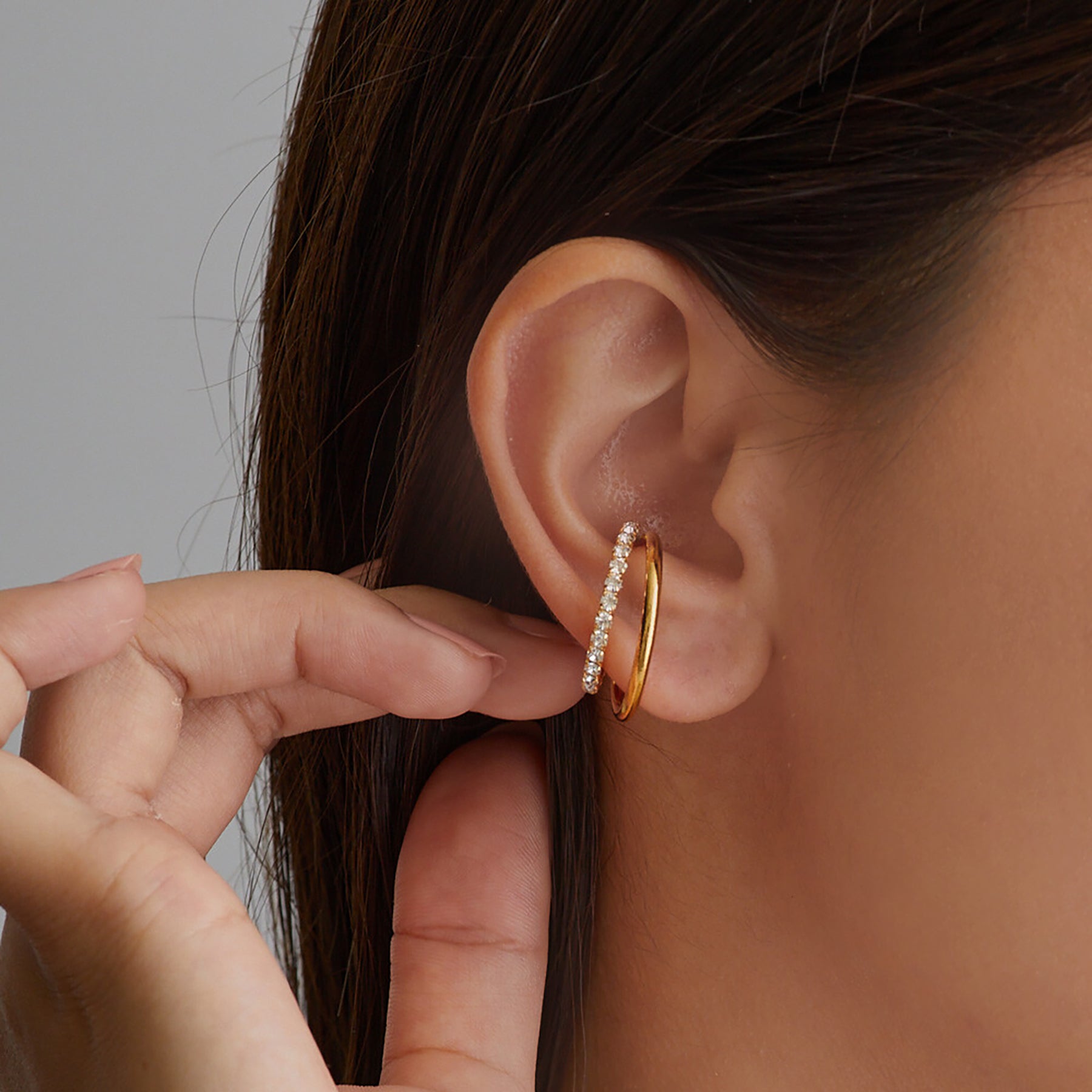【Exquisite】Wear our nickel-free hypoallergenic ear clip, made of alloy 18K gold-plated 18KGP, with a hoop inlaid with artificial diamonds and rhinestones. Its exquisite design and rich details highlight the eternal beauty. This women's two-row twisted 3D inlaid rhinestone ear clip is versatile.